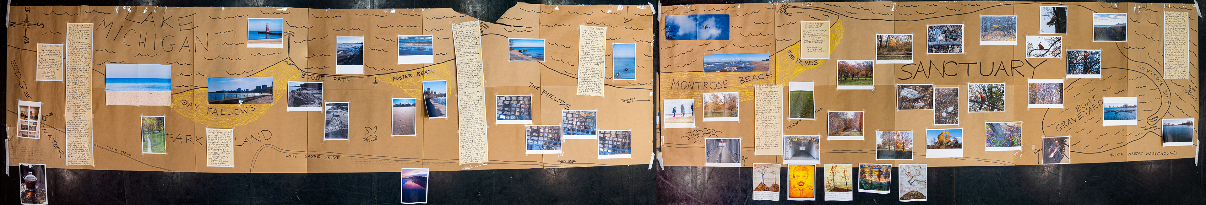 An immersive performance of song, multimedia and sense memory. This is a project of psychogeography created by mapping a series of drifting walks in Chicago in autumn of 2021.